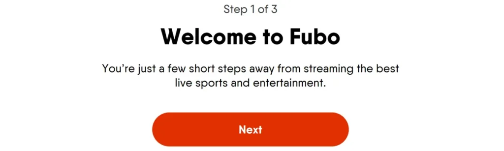 Welcome Page: On the “Welcome to Fubo” page, click Next.