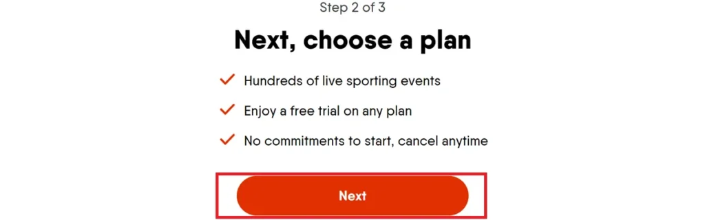 View Plans: Click Next to view the available Fubo plans.