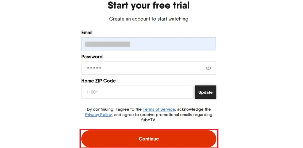 To sign up for Fubo TV, you must visit the official Fubo website, as registration through the FireStick app is not available. You can also take advantage of a 7-day free trial. Follow these steps to create your account: