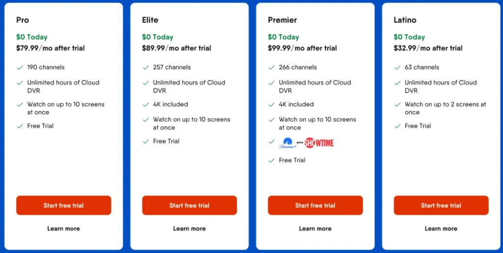 Visit the Website: Go to www.fubo.tv and click the START FREE TRIAL button.